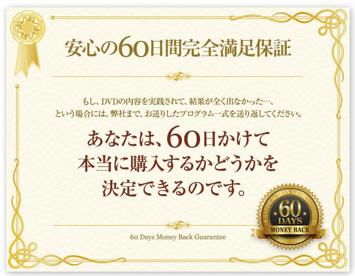 そこで、お買い上げ頂きました商品の[全額返金満足保証]サービスを設けております。