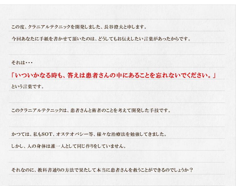 この手技を開発した長谷澄夫先生からお手紙を頂きましたのでご紹介します。