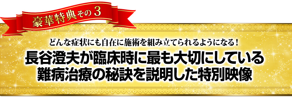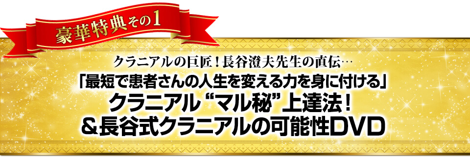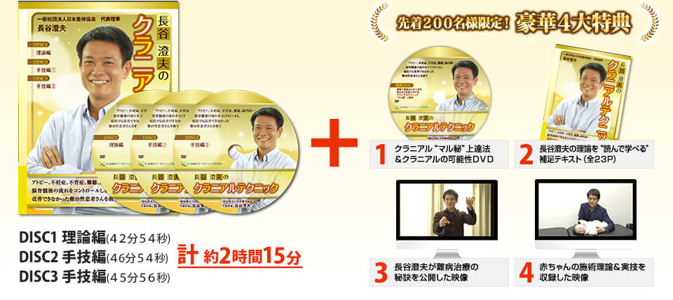 その最新の長谷先生のクラニアルテクニックを是非とも特典DISCがプレゼントでついてくる