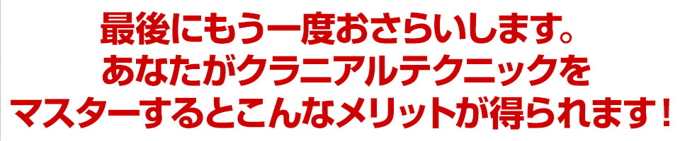 贈呈させて頂きますので、ぜひこのチャンスを逃さないよう、今すぐお申込ボタンをクリックして長谷先生のクラニアルテクニックを手に入れてください。